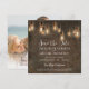 "Annonce de mariage avec lumières Edison vintage et entrepôt industriel en briques Save the Date avec photo." Annoncez vos prochaines noces avec le thème de votre célébration - un mélange parfait de chic urbain rustique et d'éclairage romantique. L'arrière-plan est rugueux, usé, vieilli et en détresse, en briques antiques aux tons profonds et riches avec des lumières Edison lumineuses suspendues. Une mise en page de texte de style typographique moderne rend ce design à jour pour les mariés contemporains. Copyright, Audrey Jeanne Roberts, tous droits réservés.