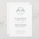 BRUNSWICK CREST. Mariage enregistrer la date carte photo. Caractéristiques, typographie vert foncé, floral botanique et vert orné monogramme crête et photo unique sur le dos.