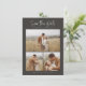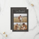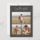 Budget Simple Calligraphie Script Modern Four Photo Save the Date dispose d'un trio de photos sur le devant, ainsi que d'un type moderne et minimal. Une seule grande photo sur le dos, avec votre site mariage.