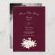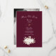 Cette annonce Save the Date a un arrière - plan bordeaux avec un or et blanc audacieux fleuri. C'est tout simplement élégant !