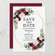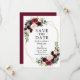 Save The Date Burgundy Bleu Aquarelle Floral Gold Geo Frame