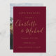 Save The Date Burgundy et Gold Elegant Signature Script Photo
