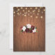 Parfaits pour les mariages de boho de campagne, ces fleurs rustiques sauvegardent les cartes datées avec un bouquet de fleurs bordeaux et rousses sur un bocal de mason avec le texte important à l'intérieur. Des lampes à cordes décorent le dessus du design, avec un arrière - plan en bois rustique.