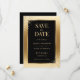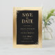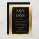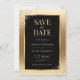 Elégant mariage noir et or enregistrer la carte de date avec détails mariages à l'intérieur d'un cadre doré orné de confettis dorés. Éléments correspondants disponibles.