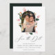 Cadre d'arche moderne, enregistrer le carte photo de date. Le cadre est orné d'aquarelles tropicales, de fleurs et d'agrumes oranges. Elégante calligraphie "Save the Date" et coordination du support couleur vert foncé.