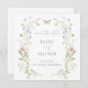 Faire-part de mariage fantaisiste à motif de fleurs sauvages pastel avec un cadre de fleurs sauvages vintage coloré. Ces faire-part sont parfaits pour ceux qui souhaitent ajouter une touche de fantaisie ludique à leur jour spécial. Le design présente une variété de verdure et de fleurs sauvages dans diverses teintes pastel de rose, de bleu et de jaune avec un beau papillon et un espace pour une photo du couple au verso.