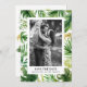 Annoncez la date de votre mariage avec cette carte plate de sauvegarde de date tropicale. Elle comporte des illustrations à l'aquarelle de feuilles de palmier, de feuilles de bananier, de monstera et de fougères. Cette carte d'annonce de sauvegarde de date de verdure est parfaite pour les mariages tropicaux et estivaux et d'autres événements. Personnalisez en ajoutant des noms, des photos et un message.