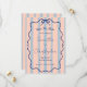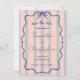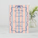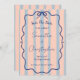 Faire-part de mariage fantaisiste et coloré représentant une douce harmonie de rose, de rayures bleu poussiéreux, d'un cadre gribouillé ondulé et d'un nœud papillon bleu. Cette combinaison simple mais romantique de son arrière-plan rétro et de sa calligraphie élégante rend cette invitation vraiment unique et amusante.