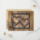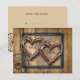 Mariage champêtre avec un thème western. Cadres de cœur en brindilles de bois, corde, fers à cheval et roue de chariot vintage.