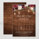 Belle carte de calendrier d'enregistrement de mariage bohème floral présente des illustrations florales aquarelles peintes à la main / roses dans des tons riches de bleu marine et de rose blush / pêche et une police de lettrage manuscrite charmante. avec des lumières de chaîne pot maçon sur fond en bois.