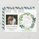 Faites savoir à vos amis et à votre famille que vous vous mariez avec ces cartes d'annonce de save the date à l'aquarelle simple. Le design présente une typographie rustique et une couronne peinte à la main à l'aquarelle de feuillage vert. Une photo adorable du couple heureux ajoute une touche spéciale, tout comme le calendrier personnalisé. Parfait pour un mariage de printemps ou d'été.