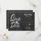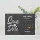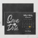 Cette carte de sauvegarde de date boho comprend un calendrier et un joli cœur d'amour doré mettant en valeur votre date spéciale sur un fond de tableau noir.