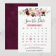 Save The Date Calendrier floral botanique rose prune violet roug