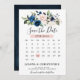 Save The Date Calendrier floral Rose Fushia Bleu Marine