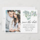 Script Calligraphie Moderne, Elégante Aquarelle Botanique Eucalyptus Feuilles, Verdure Enregistrer La Date Fiançailles Faire-part Couple Carte photo