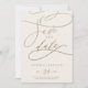 Cette calligraphie d'or romantique ivoire sauvegarder la carte de date est parfait pour un mariage simple. Le design classique moderne comprend des tourbillons fantaisistes et des fleurs fantaisistes avec une magnifique typographie de feuille d'or en faux champagne.