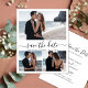 Script de calligraphie minimaliste Élégant 3-Photo Collage Wedding Enregistrer les cartes de dates en noir et blanc. Ce design méticuleusement travaillé est adapté aux mariages modernes, dégageant un charme romantique enchanteur. Avec son gracieux collage en grille de 3 photos et sa police de queue de course en lettres moulées, ces cartes encapsulent l'élégance contemporaine. Personnalisez sans effort chaque carte avec vos détails et photos mariages précieux, offrant une façon raffinée et sophistiquée d'annoncer et de célébrer votre journée extraordinaire.
