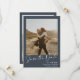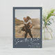 Elégant script calligraphie simple 2 photos bleu marine poussiéreux mariage bleu et blanc enregistrer la date.