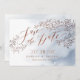 Elégante calligraphie moderne enregistrer la carte de date avec un design floral rustique en couleur marron cuivre sur sérénité arrière - plan bleu aquarelle, idéal pour mariage rustique moderne, mariage de printemps ou mariage d'hiver. Voir toutes les pièces correspondantes dans la collection ci-dessous.