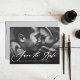 Mariage Calligraphie moderne Enregistrer la date Carte photo élégant avec Motif Chevron. Vous pouvez customiser le dos en ajoutant une autre photo ou votre propre motif.
