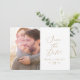 Cette délicate photo de calligraphie dorée sauver la carte de date est parfait pour un mariage moderne. Le design minimaliste romantique présente une belle et élégante typographie de champagne jaune doré sur un arrière - plan blanc au look épuré et simple.