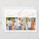 Whimsical Verona coucher de soleil orange script calligraphie trois collage photo automne Enregistrer la carte Date. Annoncez vos nouveautés grâce à cette carte Save the Date au design exquis, qui présente une calligraphie orangée chaleureuse qui donne un air d'élégance raffinée. L'avant de la carte est un collage visuellement agréable en trois photos, vous permettant de mettre en valeur des moments chéris. En retournant la carte, vous découvrirez une autre photographie bien-aimée, accompagnée des noms du couple et d'un lien vers le site de leur mariage, pour vous assurer de disposer de tous les détails nécessaires.