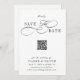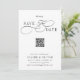 Ce script romantique enregistrer la carte d'annonce de date est parfait pour un mariage simple. Le design minimaliste noir et blanc présente une calligraphie rapide et romantique avec un code QR. Pour une personnalisation plus avancée de cette conception, cliquez sur le BOUTON OUTIL DESIGN BLEU ci-dessus !