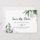 Cette calligraphie tropicale verte mariage horizontal sauf la date est parfait pour un mariage simple. Le design est composé de feuilles tropicaux à dominante verte, avec une touche de fleurs roses rousses, soigneusement arrangées en couronnes élégantes et formes géométriques.