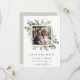 Ce mariage enregistrer la date photo d'invitation caractéristiques peint aquarelle eucalyptus, feuilles verts et un cadre carré or. Pour une personnalisation plus avancée de cette conception, cliquez sur le lien "Customiser plus loin". Des articles correspondants sont également disponibles.