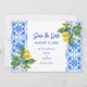 Save The Date Carreaux bleus méditerranéens et citrons pour anno