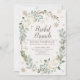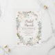 Cartons d'invitation de brunch de mariage avec des fleurs hivernales, des flocons de neige en or et en argent, et des feuilles.