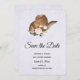 Enregistrez la carte de date avec un design mignon avec un casquette de cowgirl brun avec des fleurs roses.