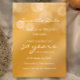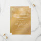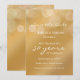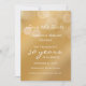 Personnalisez cette invitation moderne et élégante pour l'anniversaire de mariage avec un dégradé doré. Ce modèle d'invitation pour les 50 ans de mariage est prêt à être personnalisé avec les noms du couple, la date de la fête d'anniversaire de mariage, le lieu et les détails, ainsi que d'autres informations si nécessaire. Tout le texte est modifiable. Il y a également un modèle de texte supplémentaire au verso si besoin. Cette carte élégante de ton doré présente une écriture blanche simple et élégante disant "célébrant 50 ans" qui peut être modifiée pour n'importe quel nombre pour une autre année d'anniversaire. L'illusion de paillettes ou de lumières féériques est créée avec un fond dégradé doré. Ce n'est pas une véritable feuille d'or mais un effet doré bronzé. Personnalisez cette carte "save the date" d'anniversaire pour
