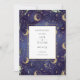 Un beau mariage céleste sauvez la carte de date avec de l'or, des lunes et des étoiles et des initiales monogrammes au verso avec un arrière - plan bleu minuit et une typographie moderne élégante. Conçu par Thisisnotme©