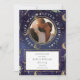 Un beau mariage céleste sauver la carte de date avec l'or, lunes et étoiles et photo spéciale avec un arrière - plan bleu minuit et une typographie moderne élégante. Conçu par Thisisnotme©