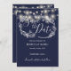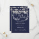 Une carte design bleu marine avec de jolies lampes à cordes et des illustrations florales délicates sur un arrière - plan noir. Personnalisez avec vos informations spéciales sauvegardez-les. Conçu par Thisisnotme©