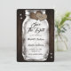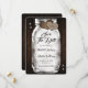 Mariage rustique enregistrez la carte de date avec un pot en maçon avec des lumières à cordes et des coeurs de burlap contre un arrière - plan en bois de grange orné de lumières scintillantes. Personnalisez facilement ce mariage rustique mignon sauvez la date en ligne. Objets correspondants disponibles pour compléter ce mariage romantique enregistrer la date.