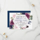 Conception de carte charmante avec de magnifiques bouquets de fleurs de lavande et de fleurs bleues marine à l'aquarelle, couronne, diviseur floral, belle écriture manuscrite, un hexagone semi-transparent et des polices spéciales. Utilisez l'outil Personnaliser pour ajouter vos informations, apporter des modifications. Pour les articles assortis, veuillez visiter ma Collection de Fleurs de Lavande Bleu Marine Florales.