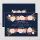 Save The Date Charme rose Floral Cadre bleu marine Mariage