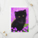 Carte avec un chat Gustav Klimt ! Ce chaton moelleux se trouve dans un champ vert de fleurs violettes. Un cadeau parfait pour les amateurs d'art amoureux des chats et autrichiens !