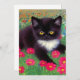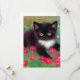 Carte avec un chat tuxedo Gustav Klimt ! Cette adorable petite chatte noire et blanche est installée dans un champ de fleurs rouges, bleues, blanches et oranges. Un cadeau génial pour les amateurs d'art amoureux des chats et autrichiens !