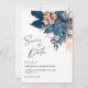 Annoncez votre grand jour avec ce Chic Botanical Floral Modern Elégant Mariage Enregistrer la Date avec étonnante aquarelle design floral dans les teintes de rouille indigo. Les éléments botaniques apportent une touche de nature à l'ensemble du design, créant une invitation parfaite pour les futurs mariés qui apprécient l'élégance rustique. Conçu avec soin pour assurer une première impression mémorable pour vos invités, le design met en valeur l'esthétique contemporaine tout en embrassant le charme intemporel d'un mariage de jardin. Faites de votre faire-part mariage unique et inoubliable avec cette invitation sophistiquée et contemporaine, qui se marie parfaitement à la rouille indigo et à l'atmosphère botanique. Idéal pour un mariage d'été, mariage de automne, mariage rustique, mariage d'hiver, mariage de printemps, mariage bleu marine, mariage boho, ou tout mariage moderne. Utilisez l'outil de conception pour customiser la taille du texte, les couleurs, les styles de police et le placement des éléments à votre goût. Pour les articles correspondants, visitez la collection d'invitations pour mariage de Boho Floral Rust Indigo.
