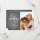 Cette photo élégante et moderne enregistrer la carte de date dispose d'une belle police de script de brosse sur un arrière - plan de tableau de bord faux. Visitez le magasin pour voir le reste de la collection de la suite Chic Typography Gold.