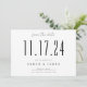 Un simple et moderne enregistrer la carte de date. Personnalisez ce design chic noir et blanc pour avoir votre date mariage, les noms et les détails.