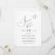 Élégant mariage chic et noir et blanc moderne Enregistrer la date. Magnifique mariage design sophistiqué enregistrer la date avec du texte noir sur blanc avec frappe Enregistrer la date script en-tête de typographie. Personnalisez avec votre enregistrer le texte des détails de la date. Le dos est blanc et solide. Tout le texte, les polices et les couleurs sont personnalisables et peuvent être ajoutés ou supprimés au fur et à mesure que vous choisissez. Nous vous invitation à visiter notre magasin Austen & Grace, pour voir la suite mariage complète, assortis produits et plus encore. Veuillez nous contacter si vous avez besoin d'aide.