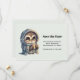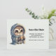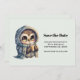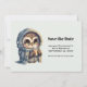 Enregistrez la carte de date avec une jolie illustration d'un chouette en robe d'hiver et un foulard tenant un café chaud.