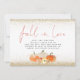 Fall in Love Citrouille Gold Parties scintillant QR Code Mariage. Citrouilles et fleurs aux teintes automnales, oranges, terracottas et crèmes, avec une touche de fausse parties scintillant or, ainsi que des bordures de parties scintillant d'or en haut et en bas. Avec un script set moderne pour Fall in Love et le reste du texte, vous pouvez facilement personnaliser avec vos détails. Ajoutez votre code QR à votre site Web mariage au verso ou supprimez ceci et le texte au verso si cela n'est pas nécessaire.
