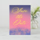 Surprenez vos proches avec cette invitation rêveuse, mettant en vedette un ciel de coucher de soleil romantique dégradé rose et violet, une écriture néon jaune, une photo personnalisée et des détails. Personnalisez-le facilement en utilisant l'option "personnaliser" et "éditer à l'aide de l'outil de conception".