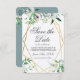 Cette carte Mariage Save The Date, élégante et classique, présente des fleurs d'aquarelle bleu, rose et blanc de saumons dans un cadre doré à double géométrie et présente des fleurs botaniques et de baies. Customisez cette Enregistrer la Date avec vos propres polices ou gardez cette typographie populaire comme elle est pour votre commodité. MIx et correspondent à d'autres objets de cette belle collection mariage.