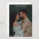 Announce your celebration with refined style using this classy and elegant black and white photo design. Showcasing a full-bleed photograph paired with graceful script lettering, this modern yet timeless layout highlights your love story in a clean, sophisticated way. The monochrome palette adds a touch of luxury while keeping the focus on your special moment. Perfect for couples who appreciate understated elegance and contemporary design, this customizable piece allows you to personalize names, date, and location for a polished and memorable announcement.